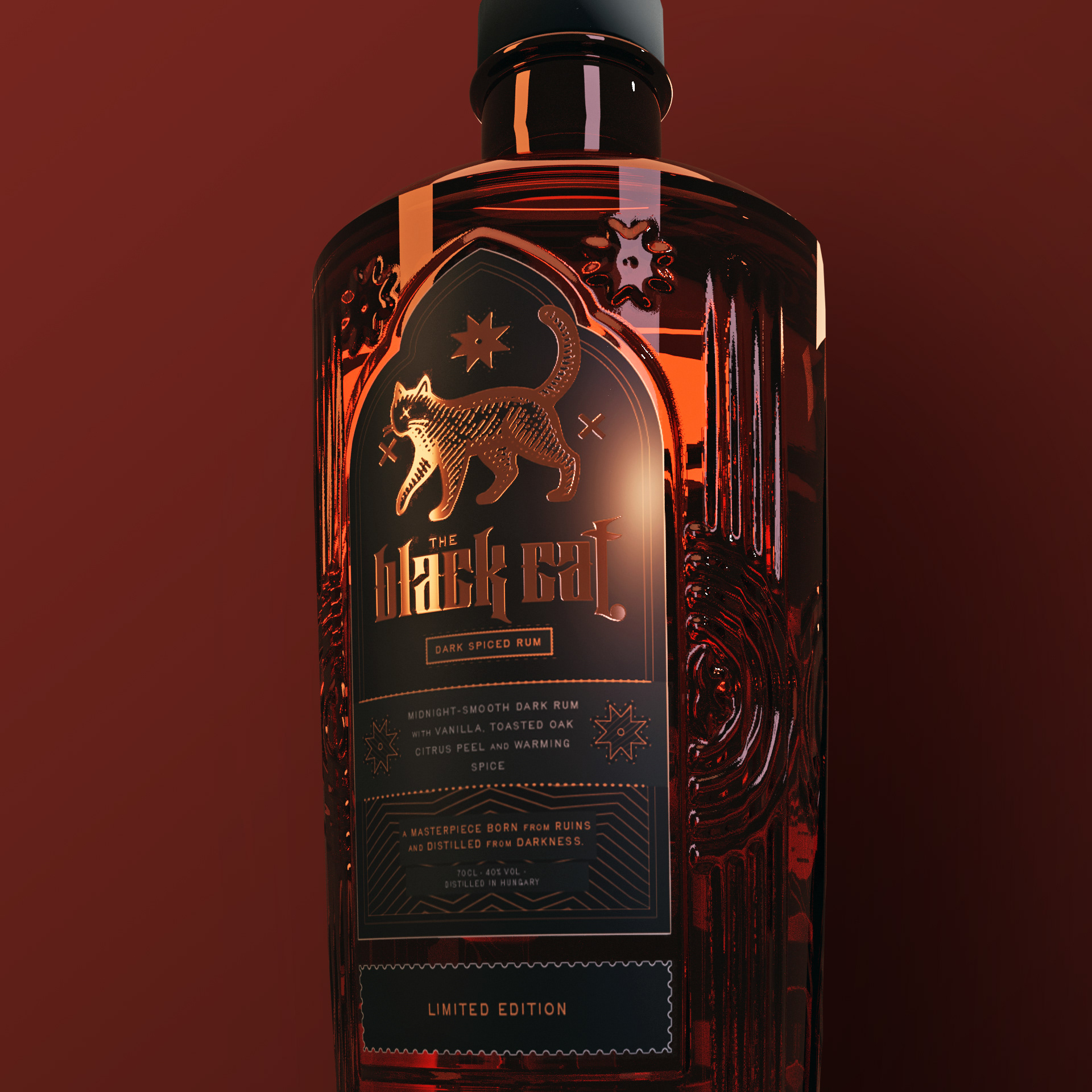 My largest project to date. The challenge was to create a cohesive brand identity that could work across two distinct product categories, fragrance and beverage, while staying true to The Black Cat's narrative origins. Drawing from the 1934 film classic, I developed a complete packaging system that merges the movie's architectural elements with authentic period design.